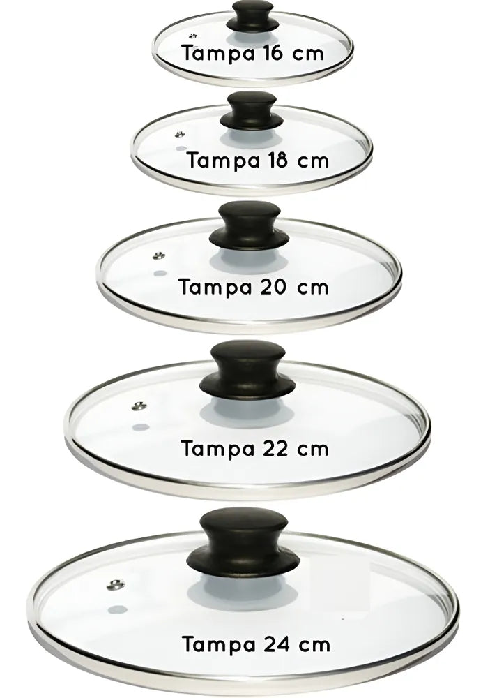 Jogo de Tampas de Vidro Temperado para Panelas Padrão de 16 a 24