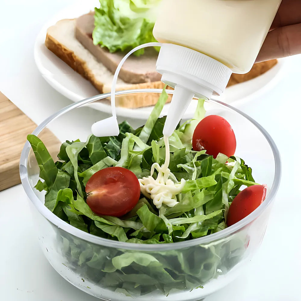 O bico conta com uma sobre tampa, que ajuda a manter o molho protegido contra sujeira ou insetos.