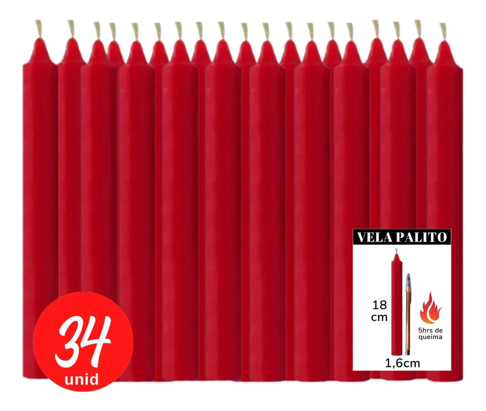 CONTEÚDO: 34 velas palito de 18 cm - 1 kg de velas aprox.