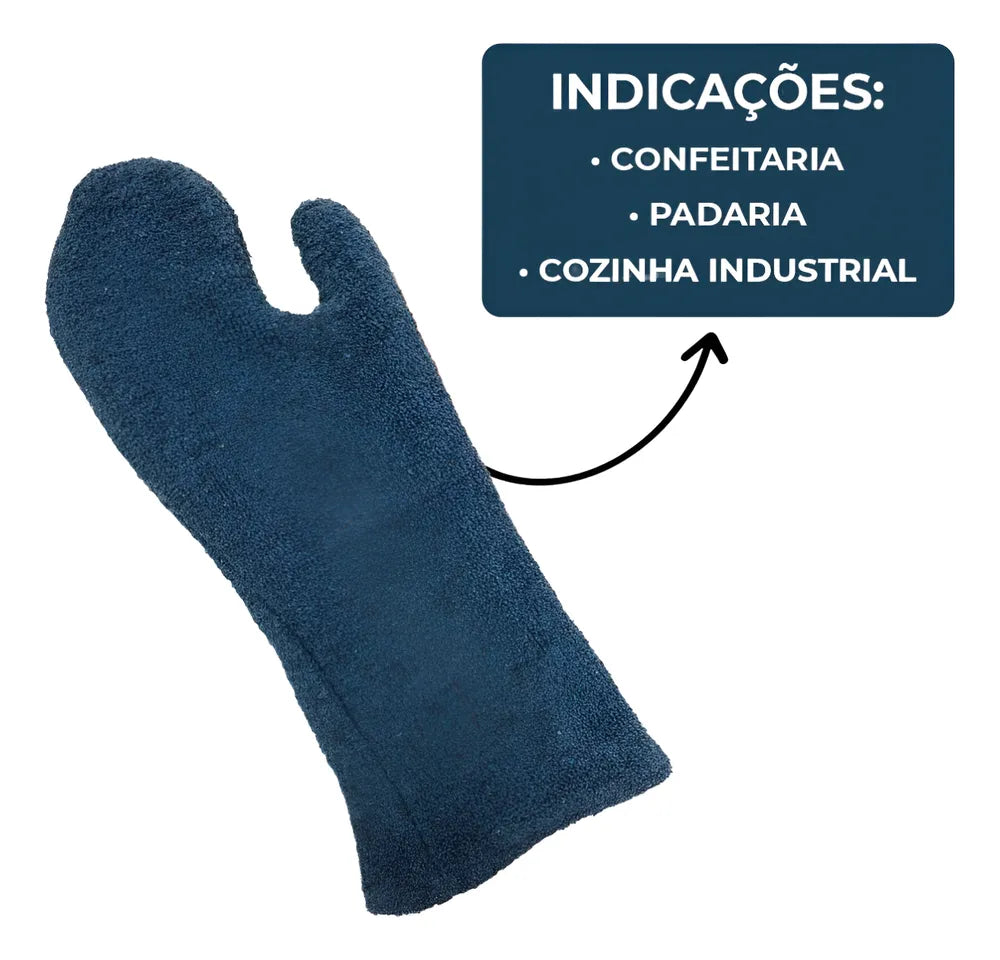 Luva de grafatex azul , forrada para cozinha Industrial Alta Temperatura Mão de Gato 35cm - Modelo reversível