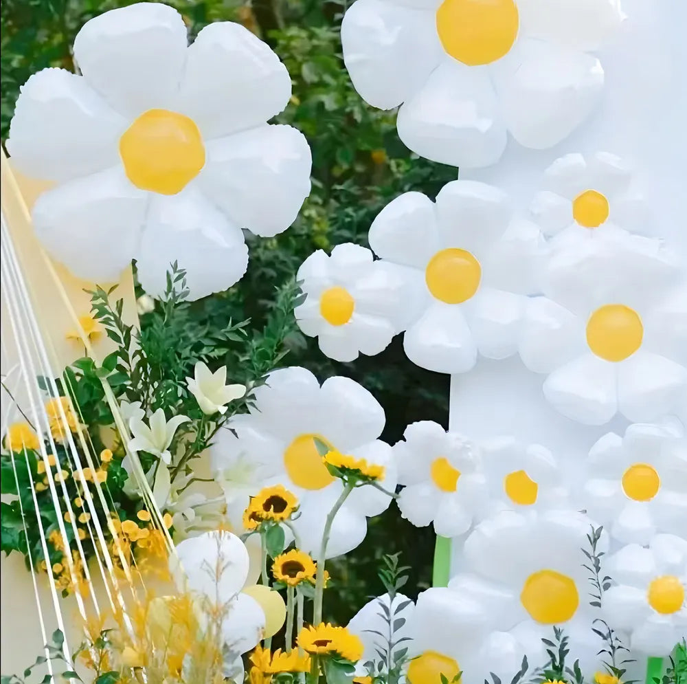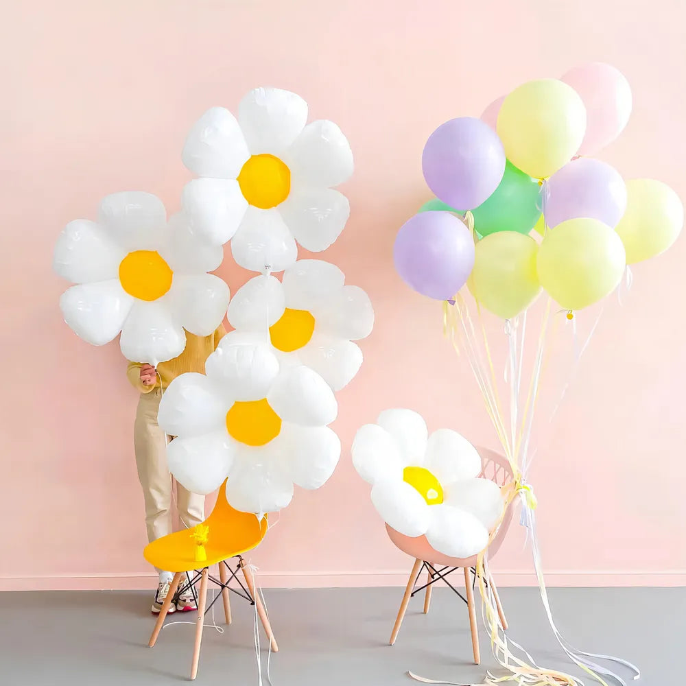 Transforme sua festa em um verdadeiro jardim encantado com os 10 Balões Flor Margarida Branca de 45cm. Feitos de plástico de alta qualidade, esses balões são ideais para decorações de aniversário e eventos temáticos. Cada balão possui uma forma delicada de flor, trazendo um toque de elegância e alegria ao ambiente. Com uma válvula que segura o ar automaticamente, você não precisa se preocupar com a desinflação rápida. Este kit não inclui acessórios adicionais, mas sua beleza é suficiente para impressionar seus convidados. Perfeitos para qualquer ocasião, esses balões são novos e prontos para dar vida à sua festa. Aproveite a versatilidade desses balões e crie um cenário inesquecível!