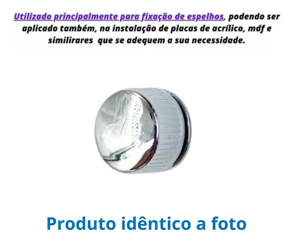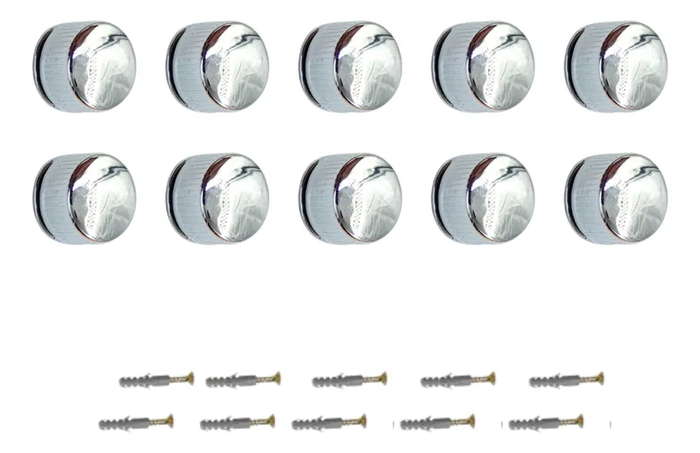Kit com 10 unidades - Botão Francês de metal Zamac + parafusos e buchas. Indicado para instalação de espelhos com até 6mm de espessura.