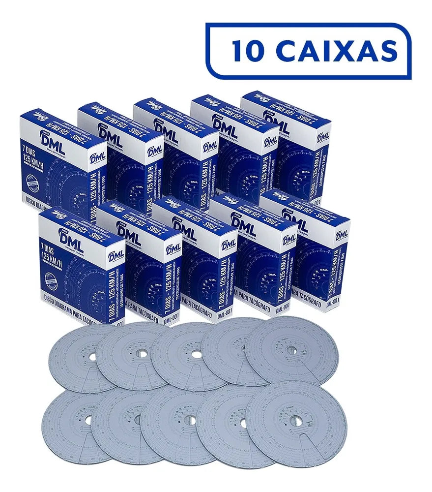10 Caixas DML Disco de Tacógrafo semanal - 7 dias 125KM
