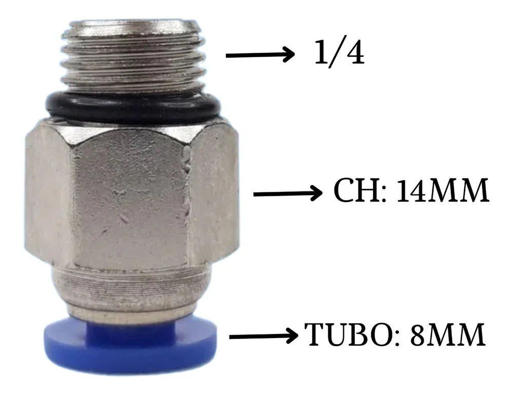 • Medida Externa dos Tubos (Métrico): 3, 4, 6, 8, 10, 12 e 16 mm.