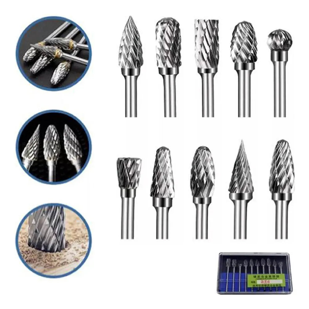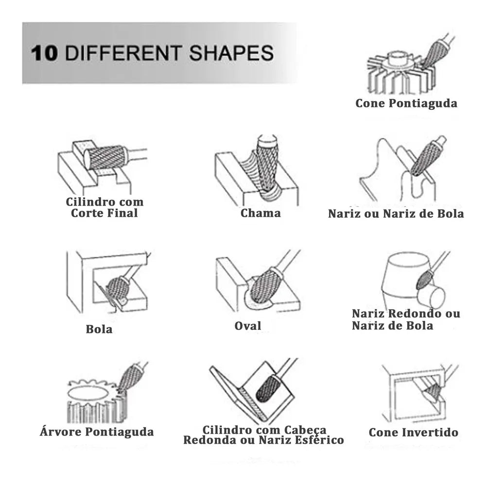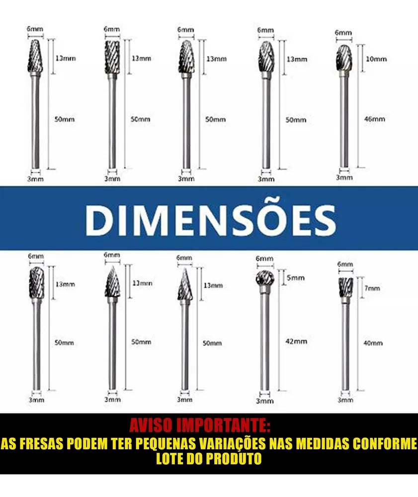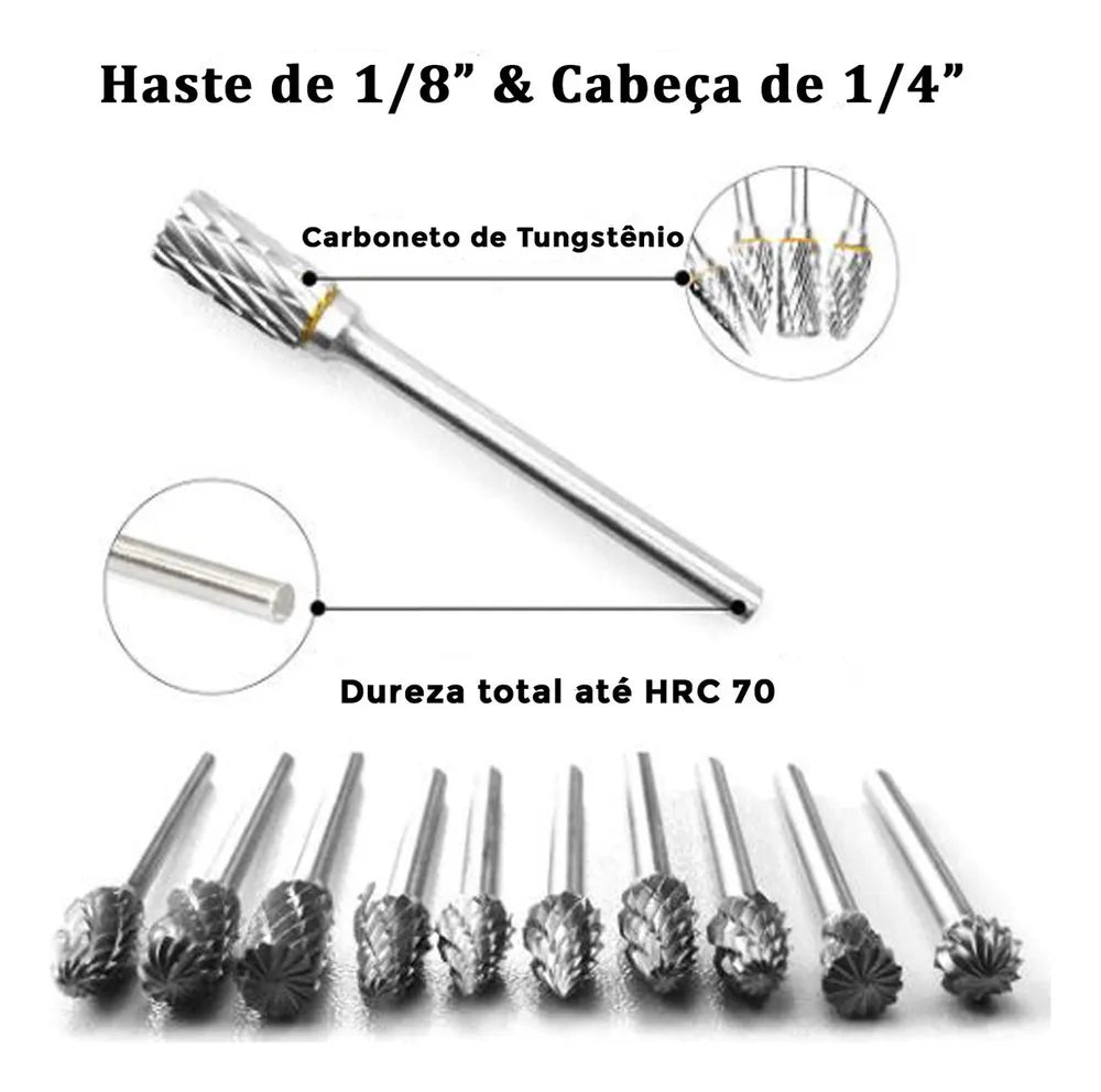 Kit Com 10 Limas Rotativas Fresa Retífica Dremel Tungstênio Metal Duro