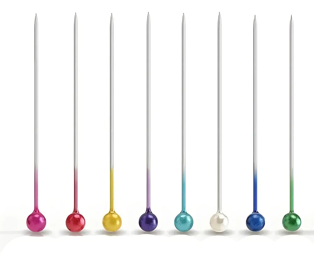 O modelo de cabeça de pérola é elegante e prático, tornando estes alfinetes uma adição valiosa para qualquer kit de costura. Cada embalagem contém 100 unidades, garantindo que você tenha sempre à mão a quantidade necessária para o seu projeto.