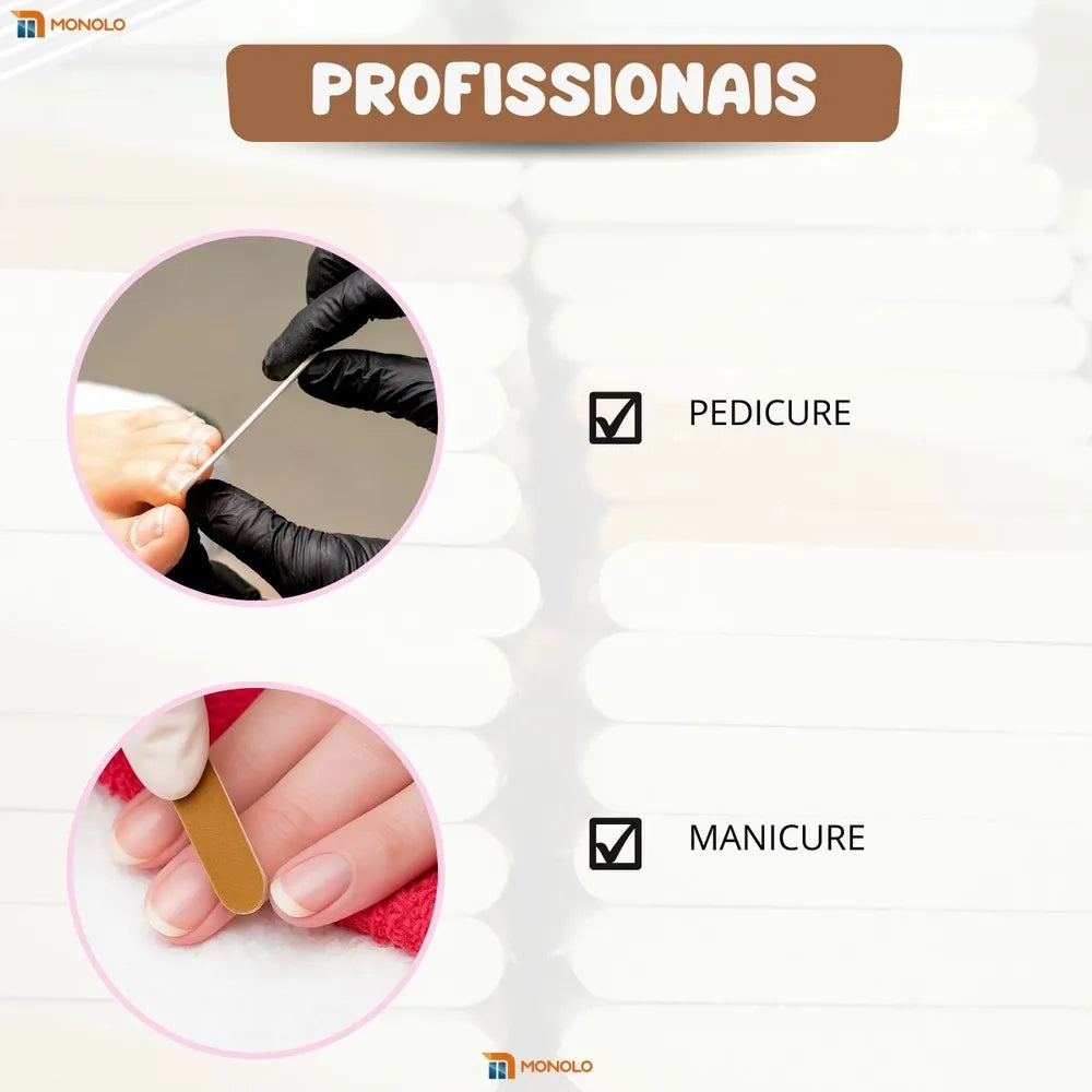 Experimente a praticidade e higiene das mini lixas descartáveis para unhas da marca MONOLO, perfeitas para uso em salões de beleza. Desenvolvidas especialmente para profissionais, essas lixas compactas são ideais para serem descartadas após cada uso, garantindo agilidade nos atendimentos diários e evitando a transmissão de bactérias, oferecendo maior proteção aos clientes. As lixas MONOLO são indicadas para lixar, polir, corrigir imperfeições e dar acabamentos impecáveis. Eleve o nível de segurança e eficiência no seu salão com as mini lixas descartáveis MONOLO.