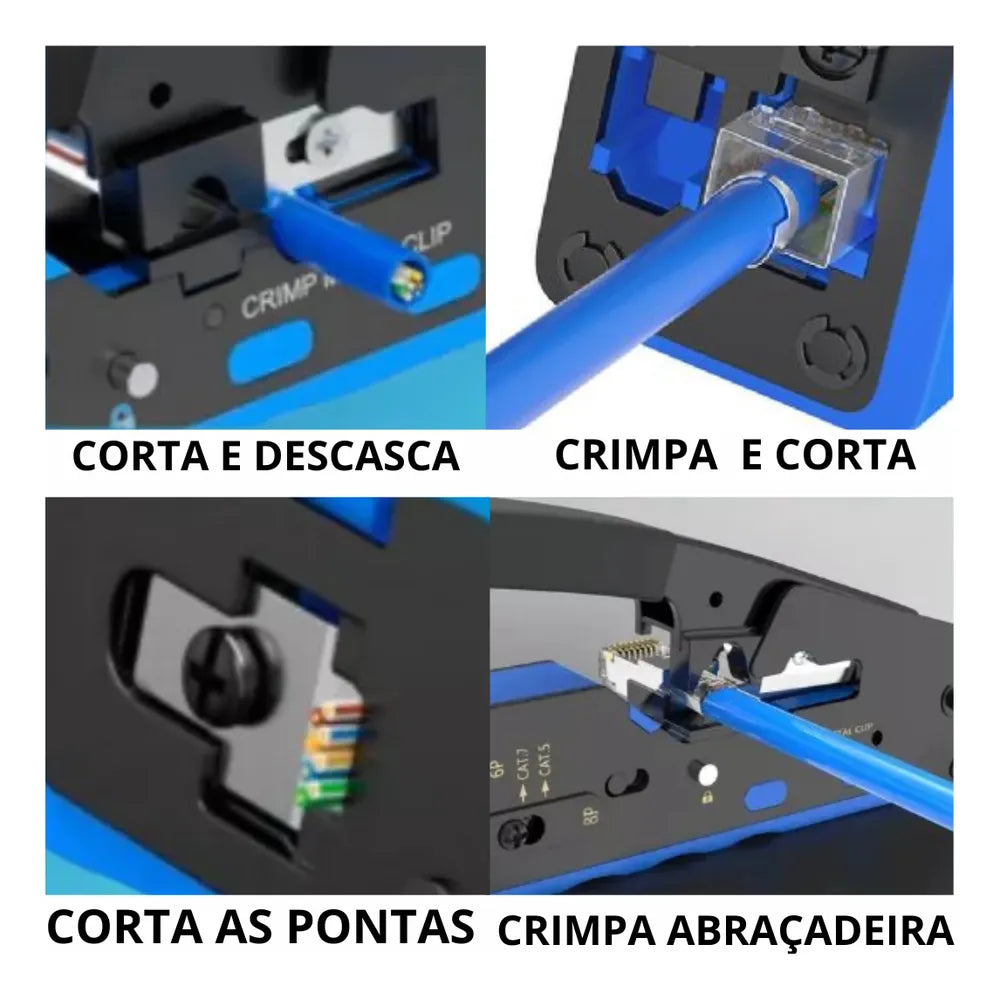 DESCASCA O CABO , CRIMPA E CORTA AS SOBRAS DOS FIOS DE UMA SÓ VEZ E AINDA CRIMPA A ABRAÇADEIRA DO CONECTOR