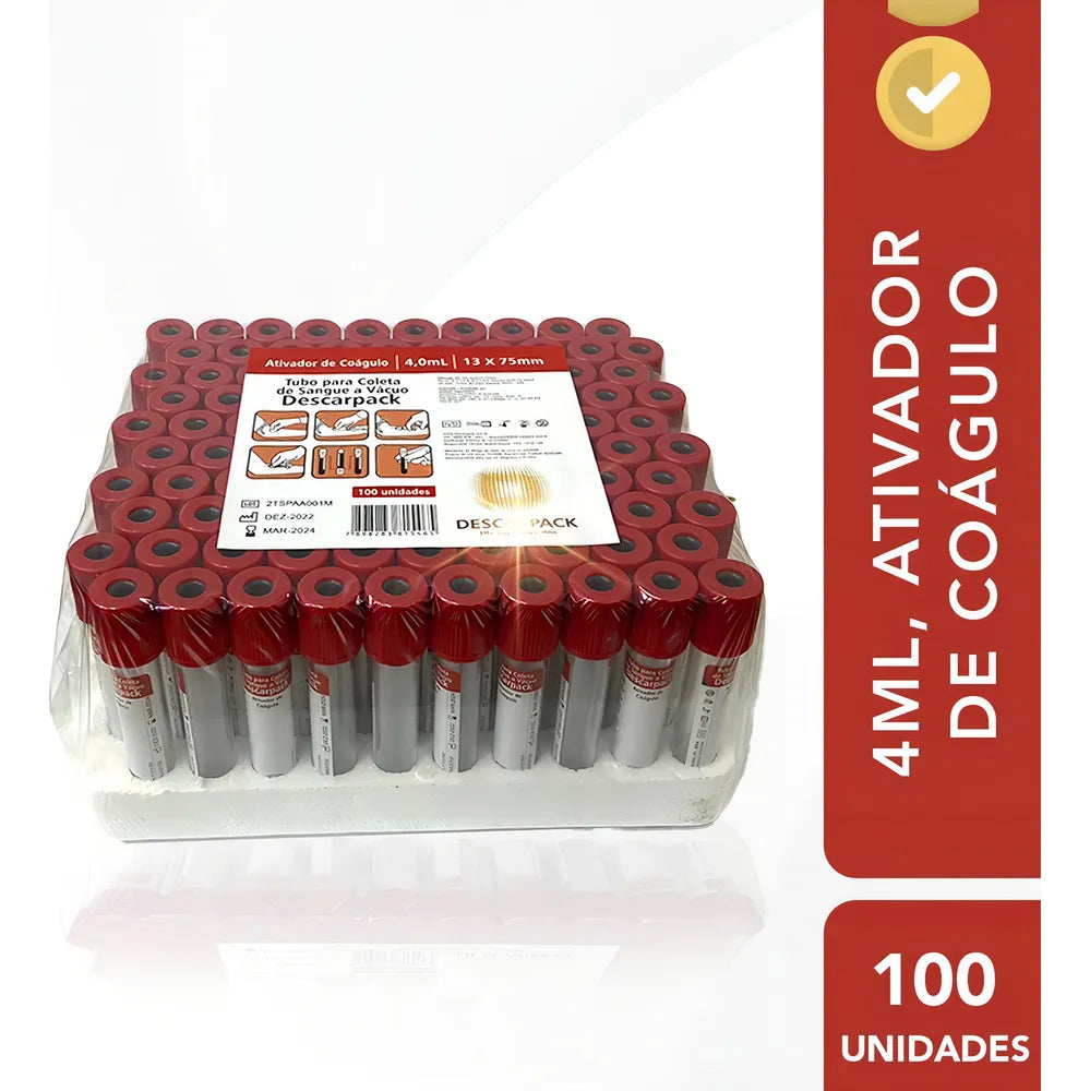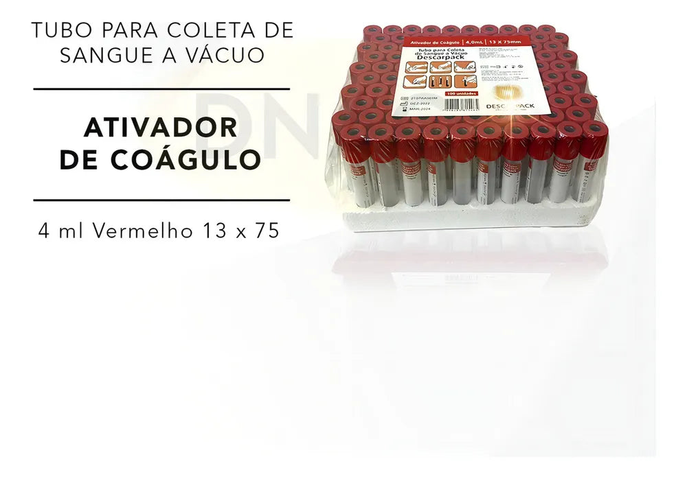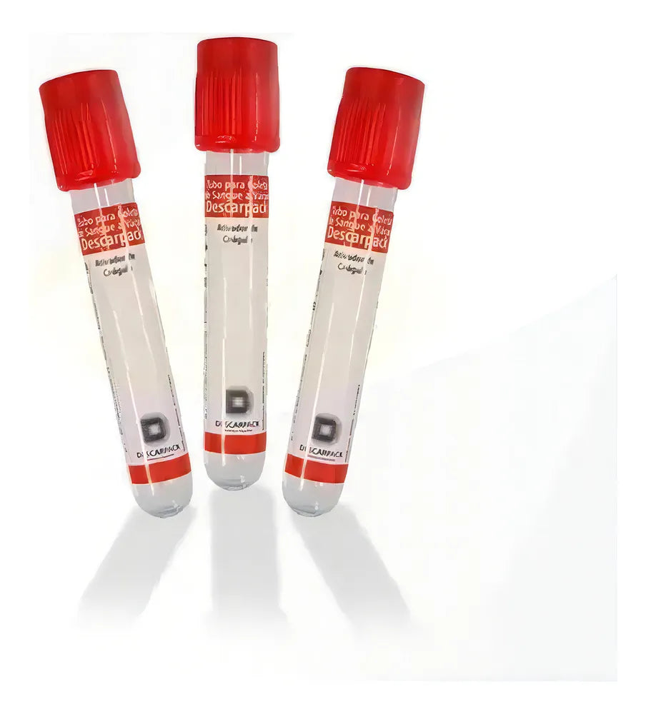 O tubo para coleta de sangue vermelho a vácuo, são para análises bioquímicas, sorologia, imunologia, marcadores cardíacos e tumorais. O tubo vermelho possui ativador de coágulo (sílica) jateado na parede do tubo, fazendo com que o processo de coagulação da amostra seja acelerado. Utilizados para determinação em soro nas áreas de Bioquímica e Sorologia. Podem ser utilizados para tipagem ABO, RH, pesquisa de anticorpos, fenotipagem eritrocitária e teste de antiglobulina direta.