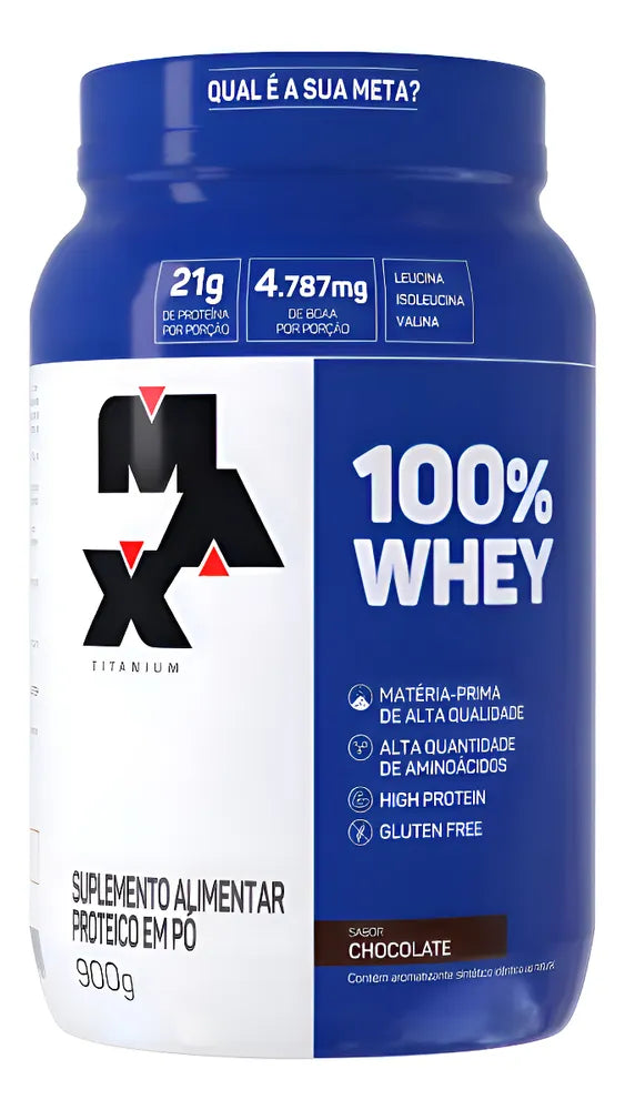 100% Whey Protein Concentrado 900g Max Titanium Sabor Chocolate