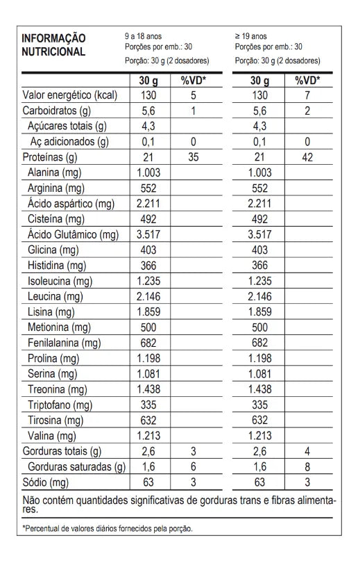 Oferece até 20g de proteína por porção/dose.