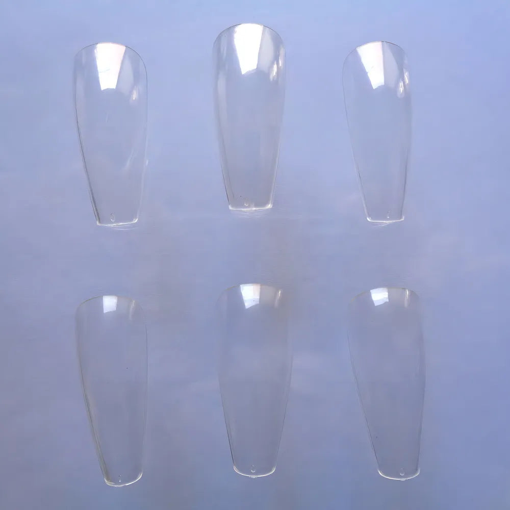 Feitas de porcelana de alta qualidade, estas unhas postiças são duráveis e resistentes, garantindo que você possa usá-las por um longo período sem preocupações. A cor transparente permite que você as personalize de acordo com o seu gosto, seja com esmalte, glitter ou adesivos.