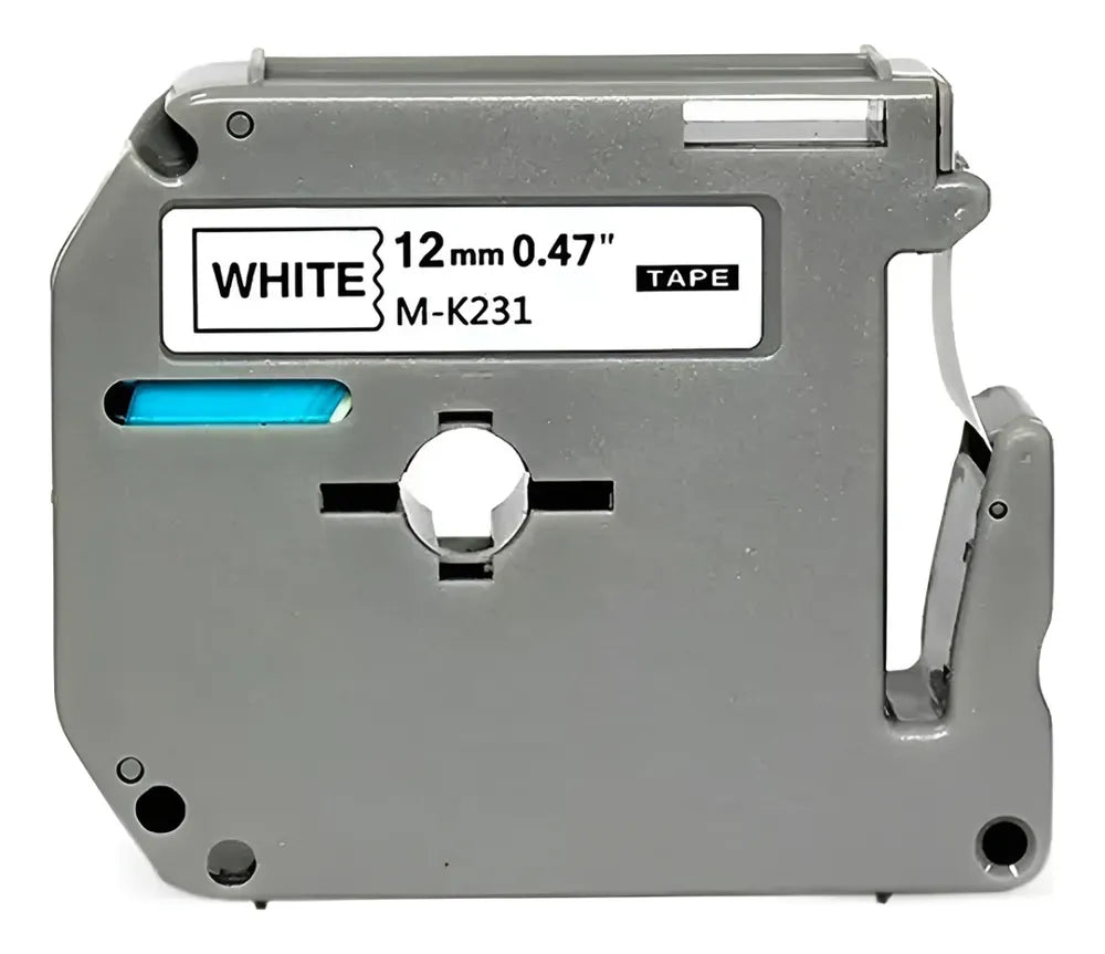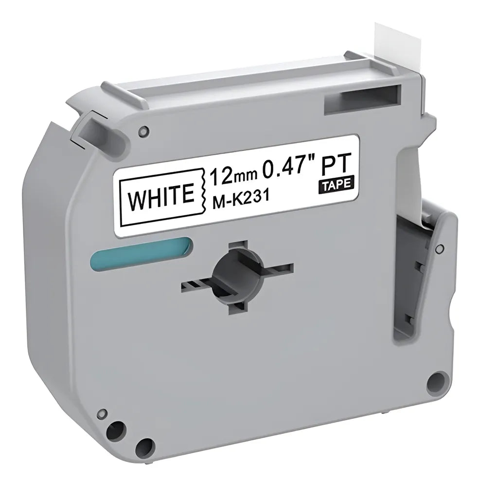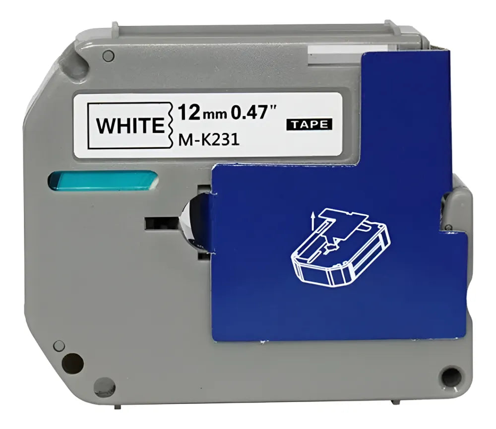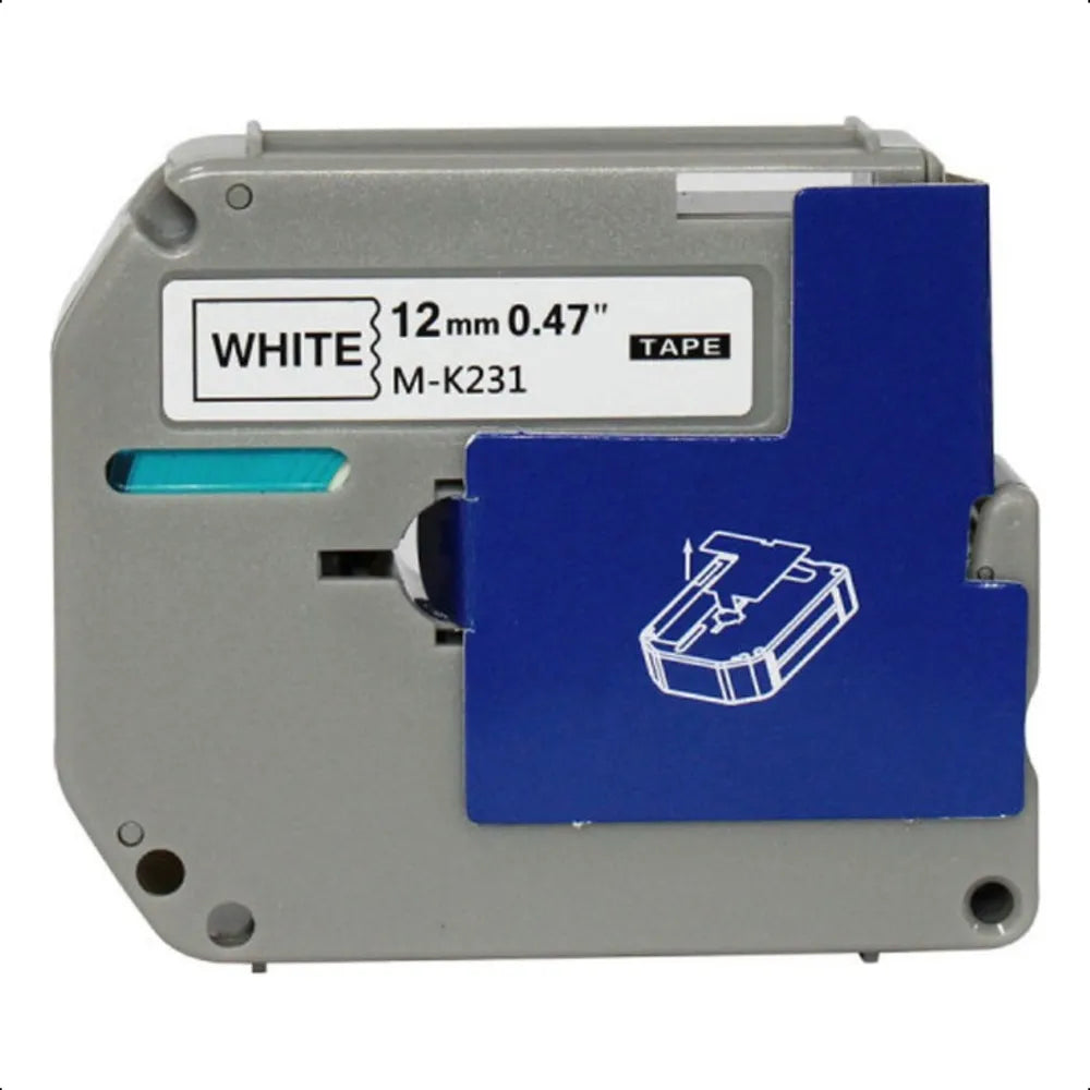 Fita Compatível com M-231 e MK-231 para rotuladores Brother® Letras na cor preta com etiqueta na cor branca 12mm