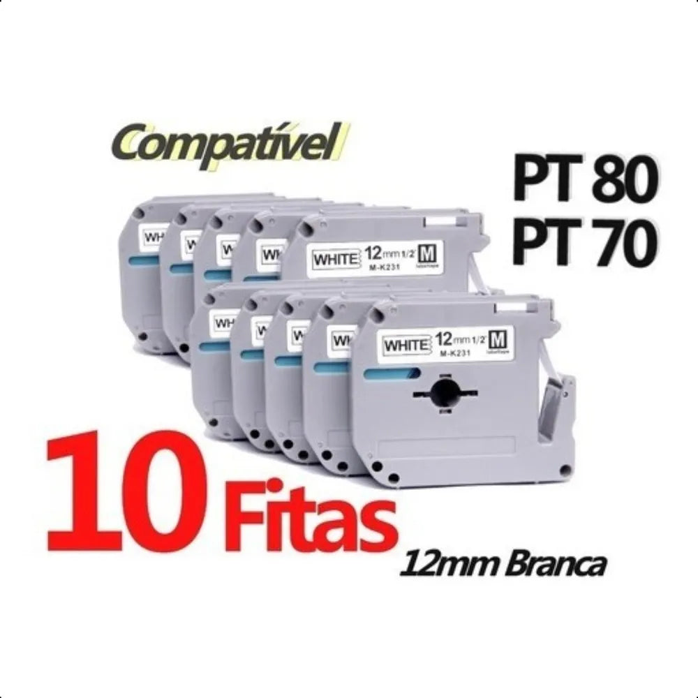 Fita Compatível com Rotulador Brother 12mm M-K231 MK-231 - Branca