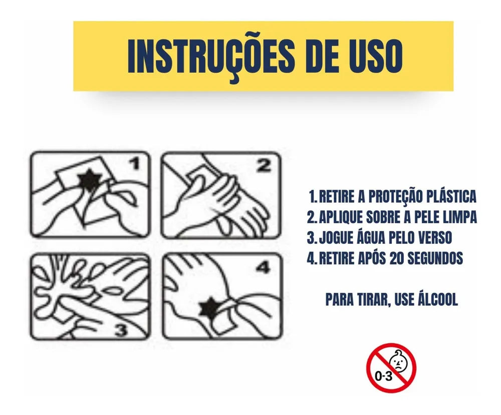 Cada tatuagem tem 4 cm de altura e 3 cm de largura, o tamanho perfeito para pequenas mãos. Elas são fáceis de aplicar e duram até três dias, permitindo que seu filho mostre seu super-herói favorito com orgulho. Além disso, são à prova d'água, então não há necessidade de se preocupar com banhos ou atividades aquáticas.