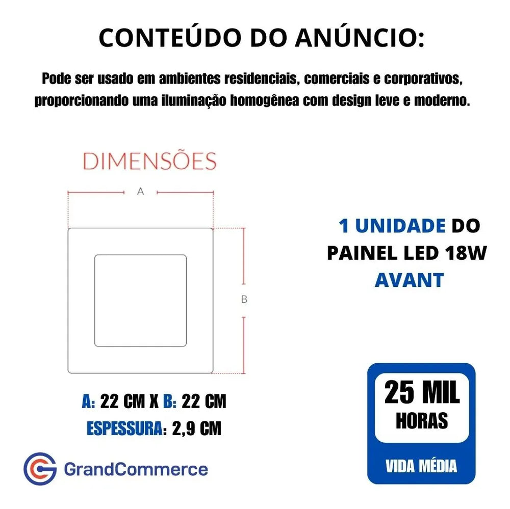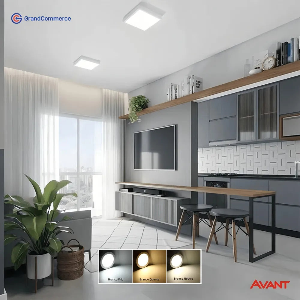 - 1x Painel Led 18w Sobrepor Quadrado Bivolt - Avant (Disponível na cor Branco Frio 6500k).