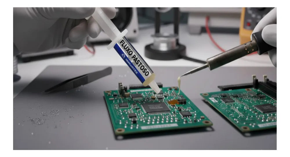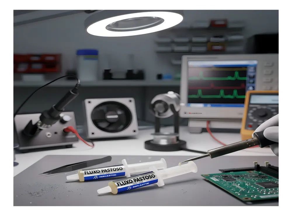 Se você é um profissional que trabalha com a soldagem metálica com soldas a base de misturas eutéticas de Estanho, essa pasta base é o que você precisa em seus trabalhos. Trabalhando juntamente com o fluxo de solda ajuda a remover oxidações causadas pelos pontos de solda e ainda melhora a molhabilidade do metal no local que se deseja soldar. Seu formato em seringa torna-se seu uso mais fácil, pratico e preciso, fazendo com que o Fluxo Pastoso seja ideal para a soldagem de placas de circuito eletrônicos.