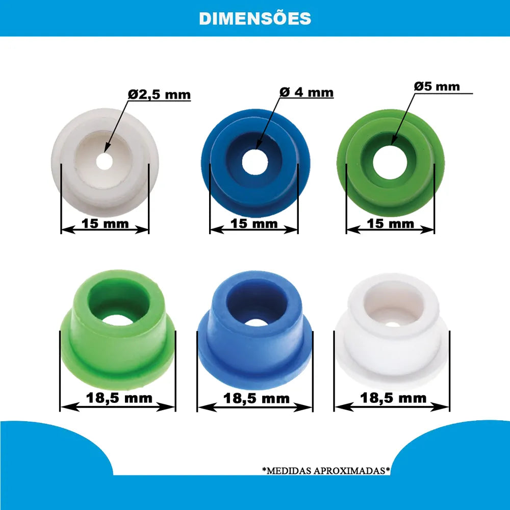 2 Redutores com passagem de 2,5 mm na cor branca;