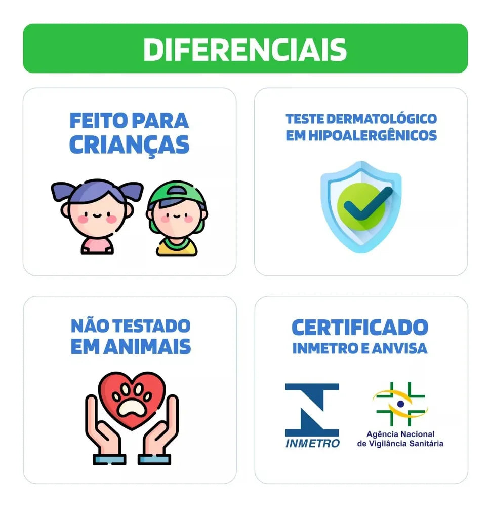 • Produto atóxico, testado e certificado pelo INMETRO e ANVISA