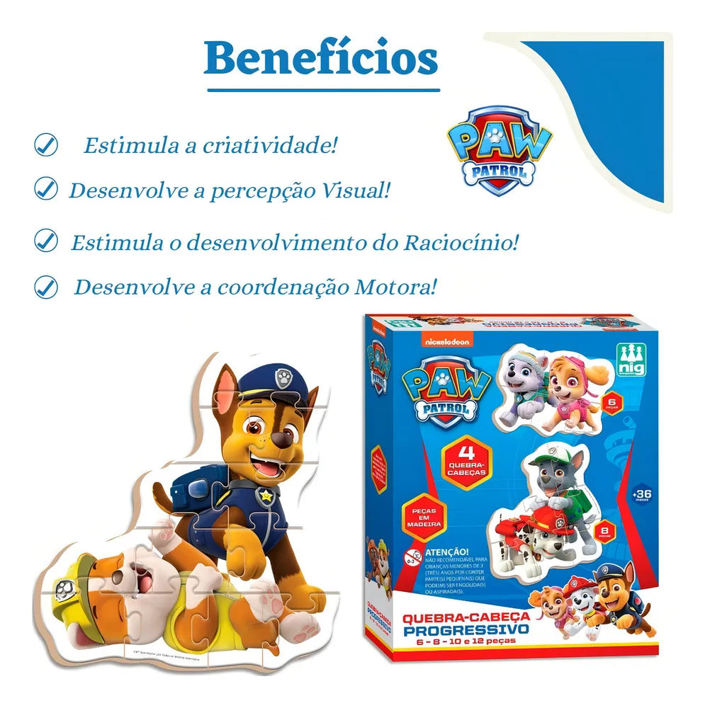 As tardes chuvosas serão as melhores! Com o quebra-cabeça NIG Brinquedos Patrulha Canina, você desfrutará de longas horas de entretenimento garantido. Além disso, você exercitará seu cérebro aumentando sua concentração e desenvolvendo sua criatividade. Aceite o desafio de montá-lo no menor tempo possível, sozinho ou trabalhando em equipe com amigos ou familiares.