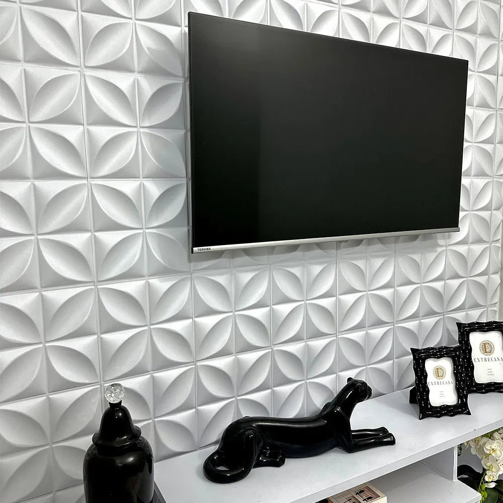 Placa Revestimento PVC 3D. Perfeito para decorações de interiores o modelo é na cor branca levando mais charme e sofisticação para seu ambiente.