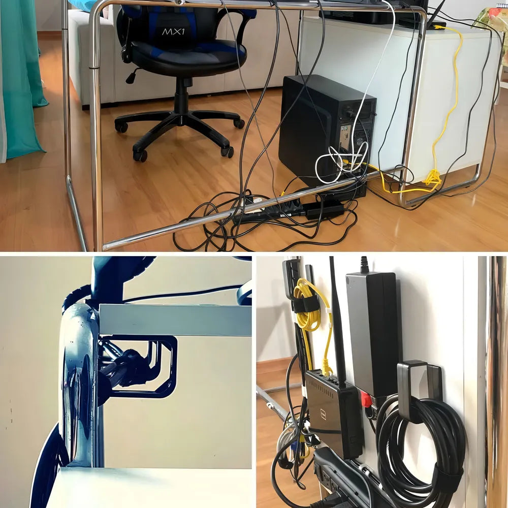 O Organizador de Fios e Cabos é fácil de instalar, com um design de gancho que permite uma instalação rápida e sem complicações. Seu diâmetro de 15 mm é perfeito para acomodar uma variedade de cabos, garantindo que todos os seus dispositivos estejam conectados sem a bagunça dos cabos.