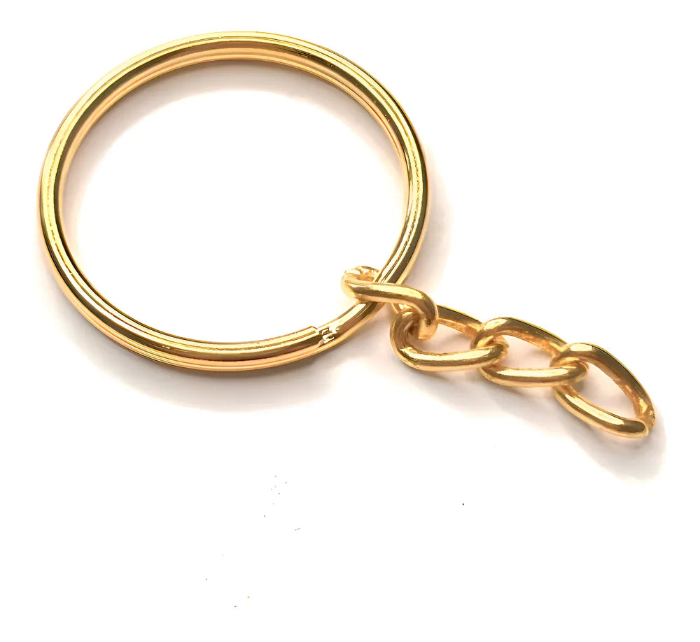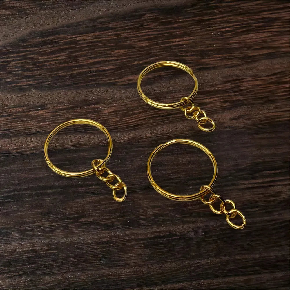 Argola Para Chaveiro Com Corrente, ideal para criar chaveiros personalizados e elegantes. Feita de metal de alta qualidade, esta argola dourada possui um diâmetro de 25mm, proporcionando durabilidade e resistência. A corrente, com comprimento de 20mm, adiciona um toque sofisticado ao seu chaveiro. Com espessura de 2mm, a argola é robusta e segura para manter suas chaves organizadas. Cada pacote contém 100 peças, perfeito para projetos de artesanato ou produção em grande escala. Produto novo, sem validade, da marca Acessórios de Joias Binbin. Não inclui gancho. Medidas aproximadas (média). Ideal para quem busca qualidade e estilo em seus acessórios.