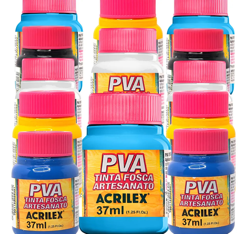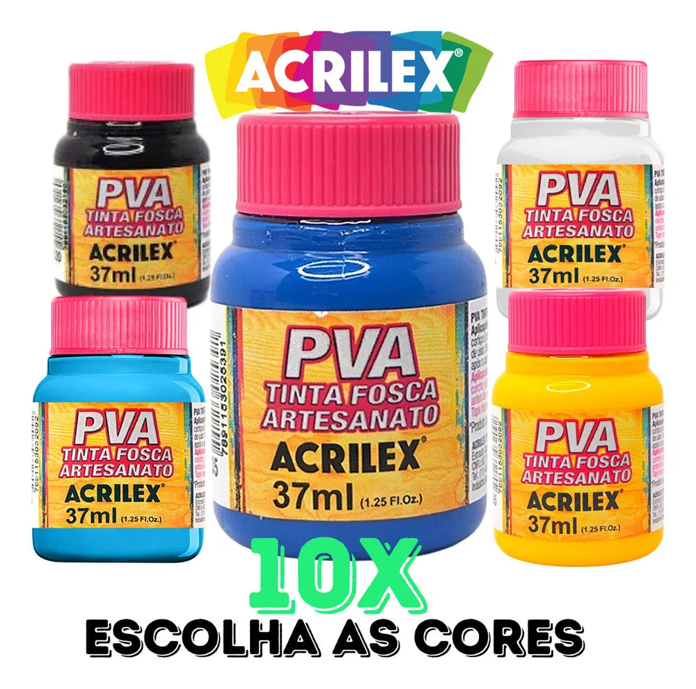 Kit 10 unidades Tintas PVA para artesanato 37ml Acrilex
