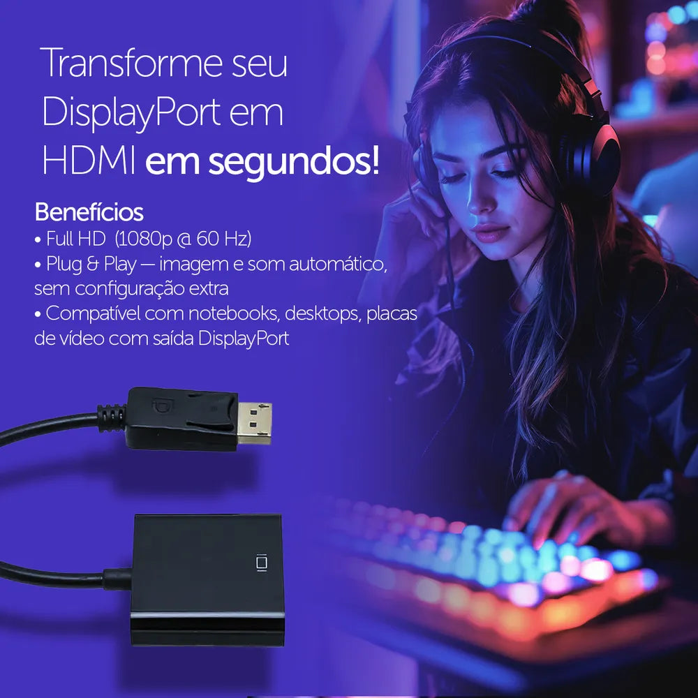 Conecte computadores ou notebooks com saída DisplayPort a monitores, projetores ou TVs com entrada HDMI.