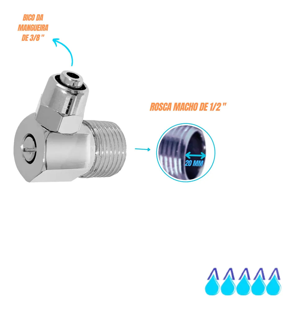 ESSE ANÚNCIO CONTÉM : ADAPTADOR BICO 90° COM REGISTRO SAÍDA PARA MANGUEIRA 3/8 ‘’ – 1 UNIDADE