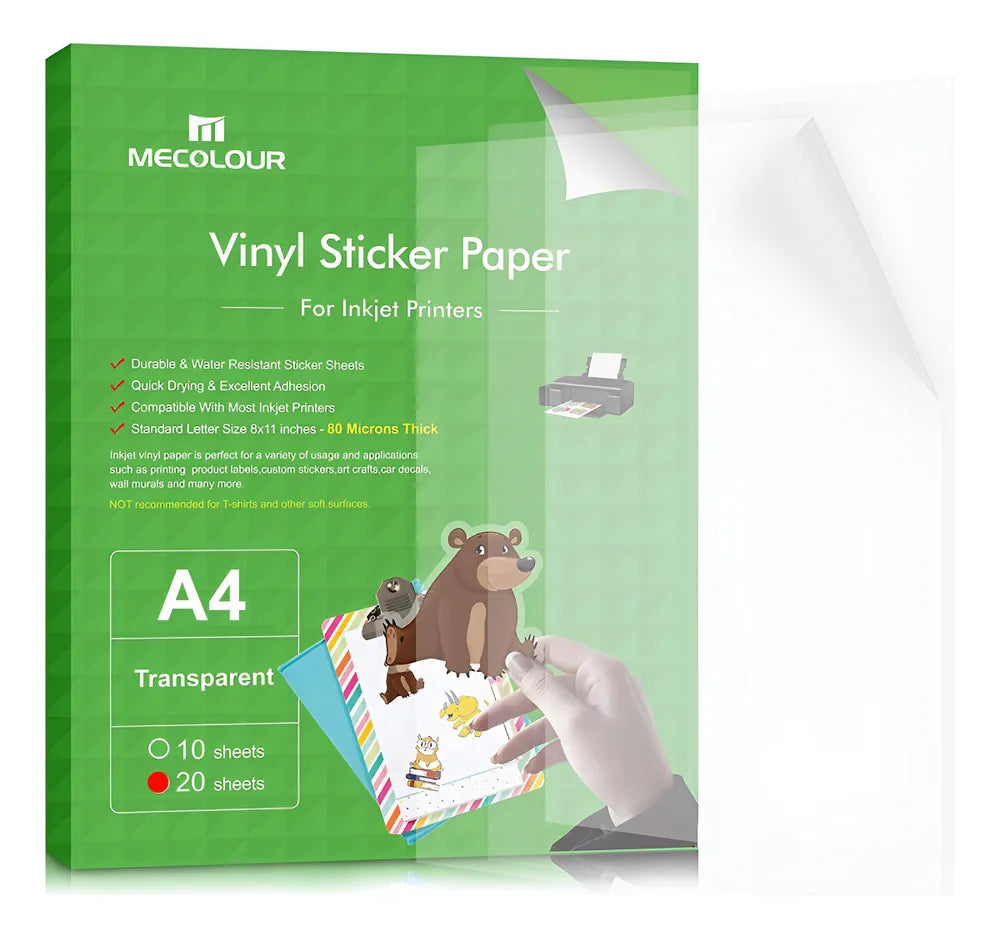 PAPEL ADESIVO VINIL IMPRESSO DE ALTA QUALIDADE: Nosso papel adesivo vinílico transparente absorve e transporta muito bem a tinta, resultando em excelentes impressões com cores vivas e alta resolução, sem manchas. A tinta seca rapidamente