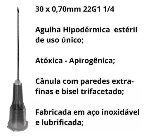 - Tamanho: 30 x 0,70 mm (22G 1/4)