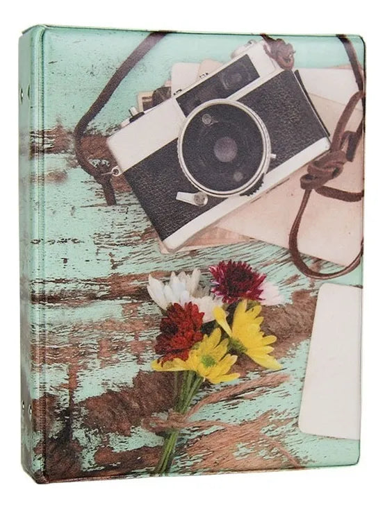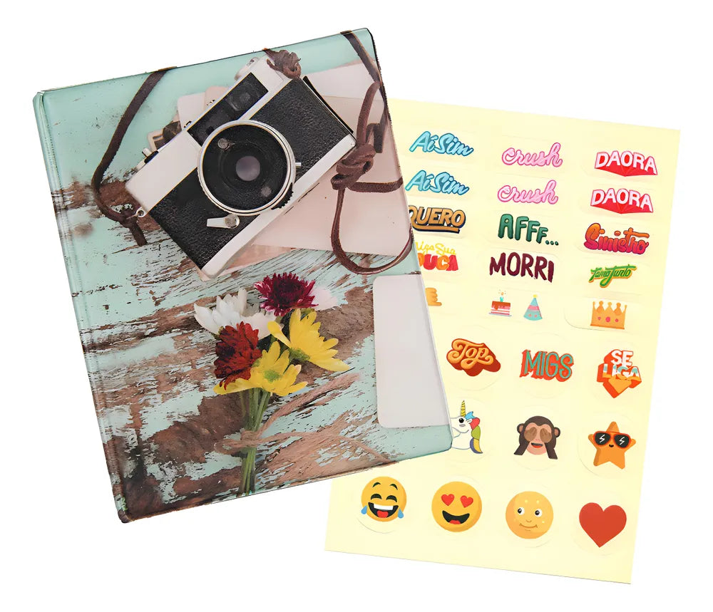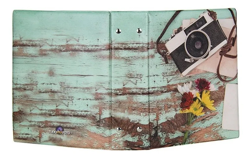 - Álbum com capa básica em couro sintético estampado