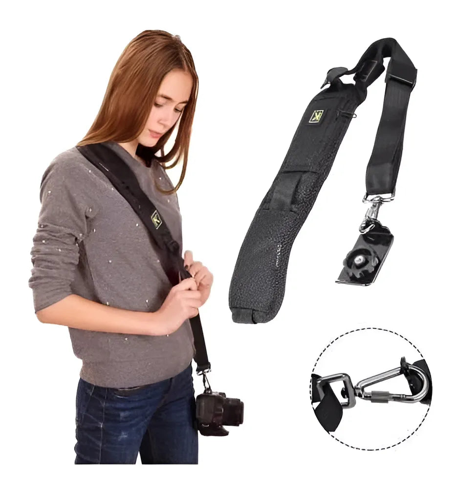 Projetado para se acomodar perfeitamente em seu ombro e reduzir a pressão ao carregar a câmera DSLR.