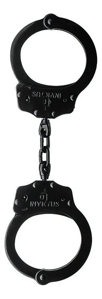 A Algema de Corrente - Preto INVICTUS é um modelo de algema de pulso que possui ligação através de elos de corrente e sistema de fechamento dentado por catracas. O modelo conta ainda com mecanismo de segurança para evitar lesão no uso, acionado pela parte traseira da chave do produto. Fabricada em aço carbono AISI 1020, tem tratamento da superfície preto ou niquelado fosco prata para adquirir a característica de antirreflexo. Acompanha duas chaves em aço carbono AISI 1020 na cor da algema.
