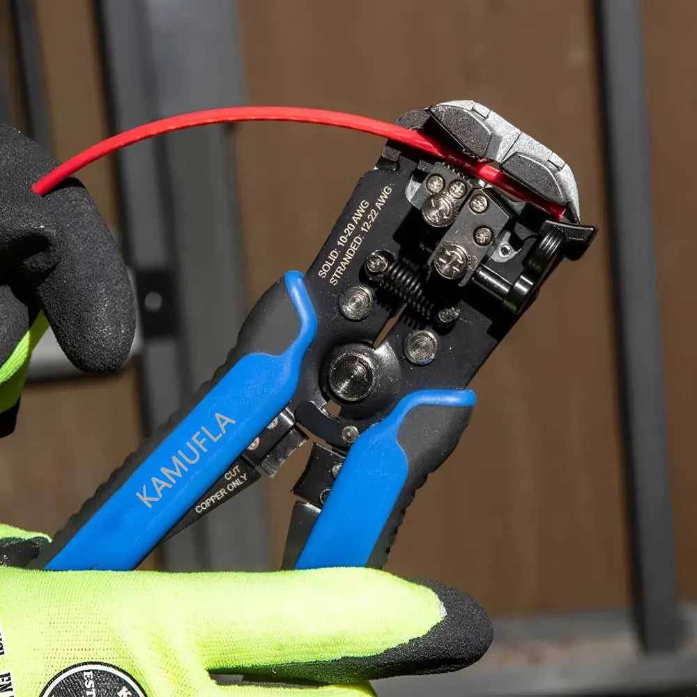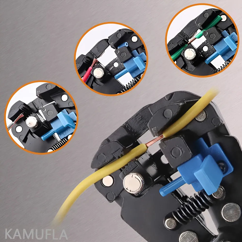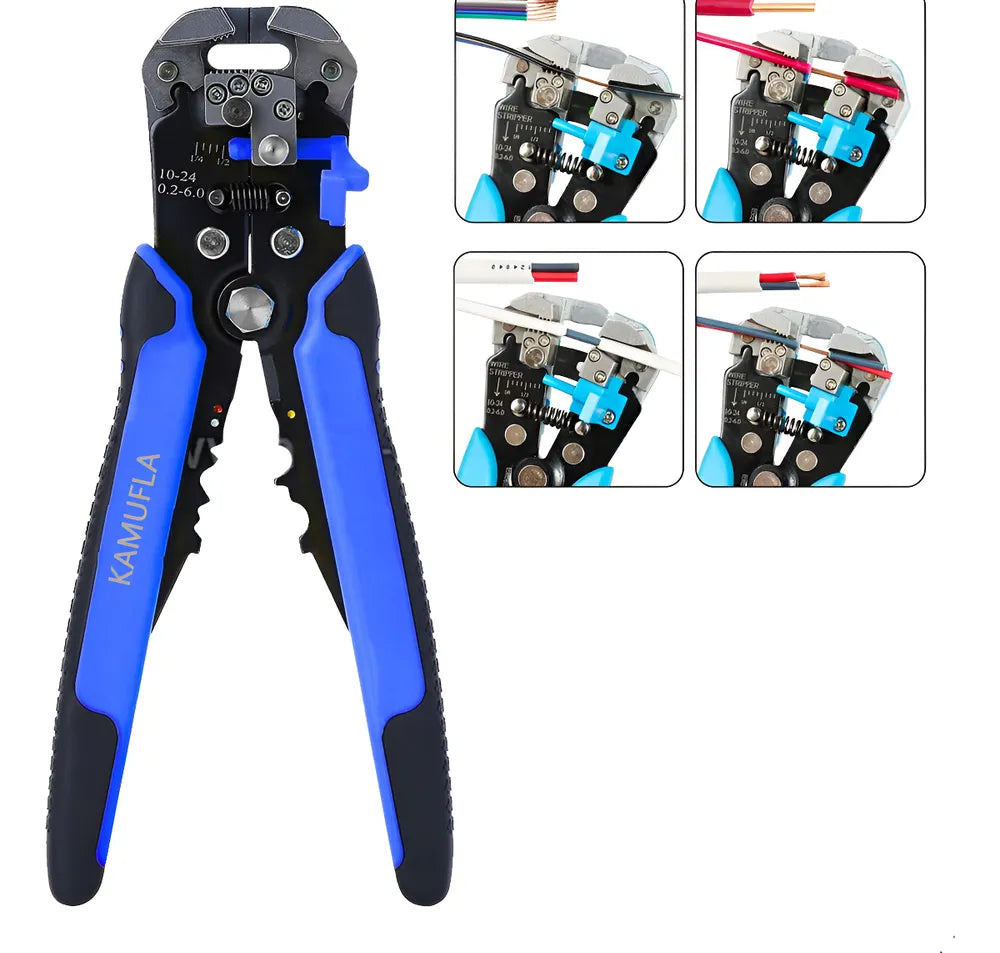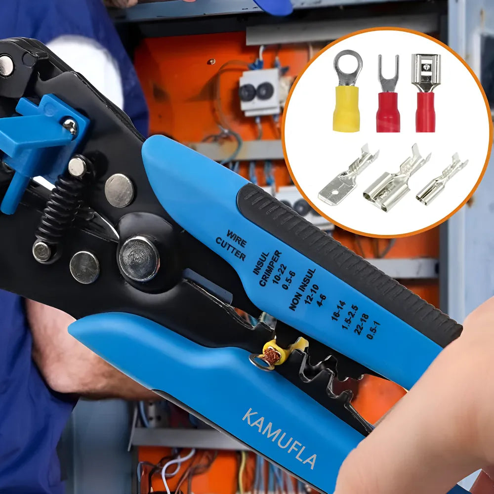 Alicate Decapador e Cortador De Fios Automático 8 Mult' possui cabos com dupla injeção e são testados para resistência ao desgaste do gume de corte em máquina de ensaio específica. Os alicates têm dureza diferenciada no gume de corte e no corpo. Possui batente para controlar e ajustar o tamanho do fio a ser desencapado, facilitando o ajuste dos cabos a serem desencapados. O batente permite desencapar sempre um mesmo comprimento de fio, otimizando a operação posterior de crimpagem com terminais normalizados. Possui pino de micro ajuste que regula a intensidade da força para corte do fio. Desencapa 7 diferentes bitolas de fios 0.2 à 6.0 mm2, corta fios de 0.2 à 6.0 mm2. Crimpa 3 diferentes tipos de terminais: com isolamento, sem isolamento de 10 - 22 AWG (0.5 mm2 à 6.0 mm2 ) e de ignição de 7 mm à 8 mm. Alicate Ideal para uso industrial e automotivo. As ferramentas são produzidas e testadas conforme normas específicas.