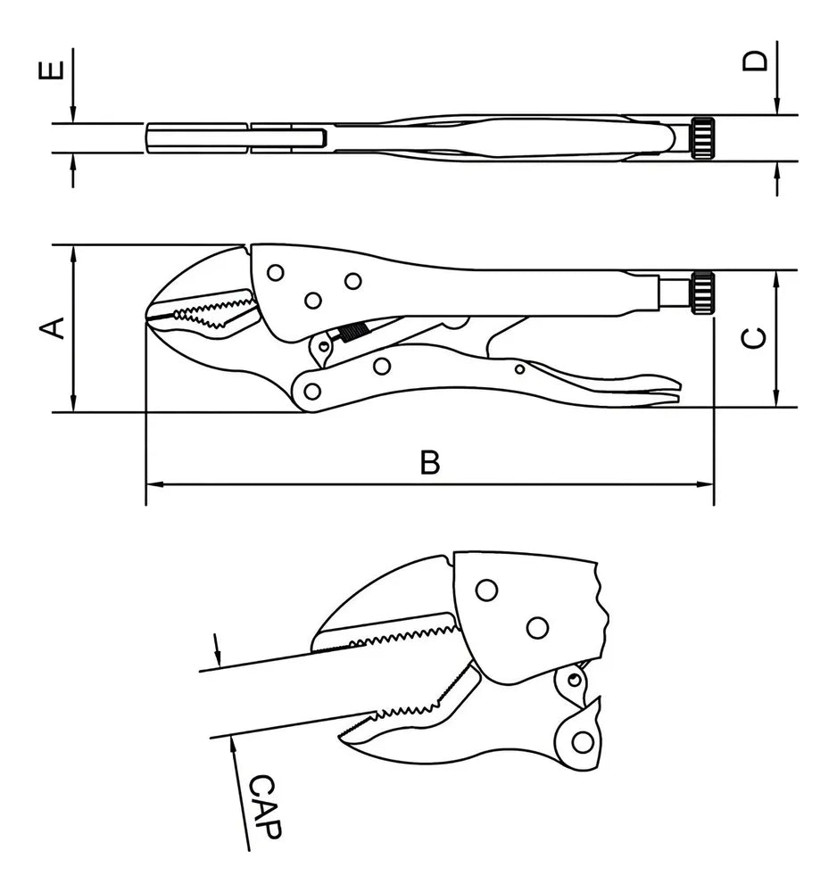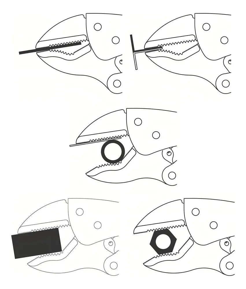 O alicate possui um design triangular, o que proporciona uma maior área de contato com a peça, garantindo uma fixação segura e firme. Seu tamanho de 10 polegadas permite um manuseio confortável e eficiente em diferentes tipos de trabalhos.