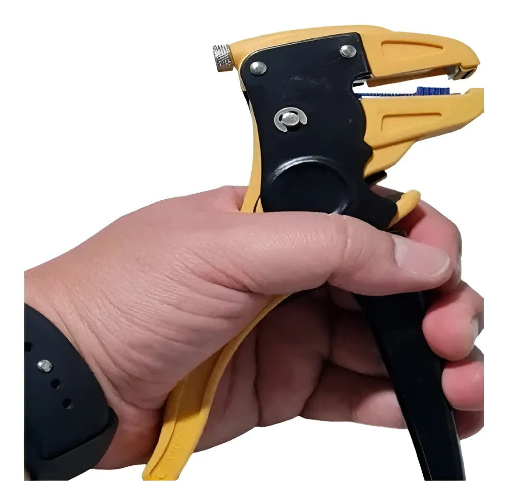 Precisando decapar/cortar fio? Nosso alicate te ajuda a decapar fios do tamanho: 0,5mm² - 6mm². Possui auto ajuste de acordo com o tamanho do fio. Lâmina de pressão ajustável para consistência do comprimento das tiras dos fios. Também apropriado para decapar fios de 8mm de cabo Flat! Resistente, prático e preciso. Profundidade de corte ajustável!