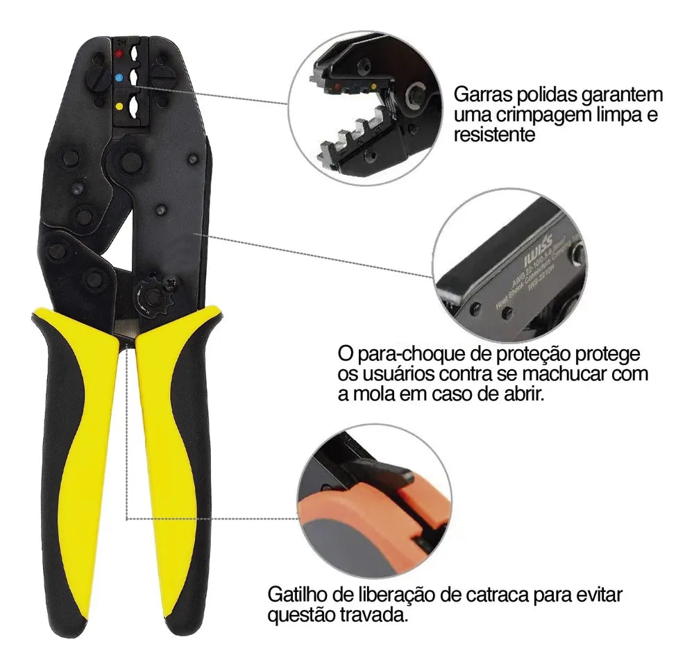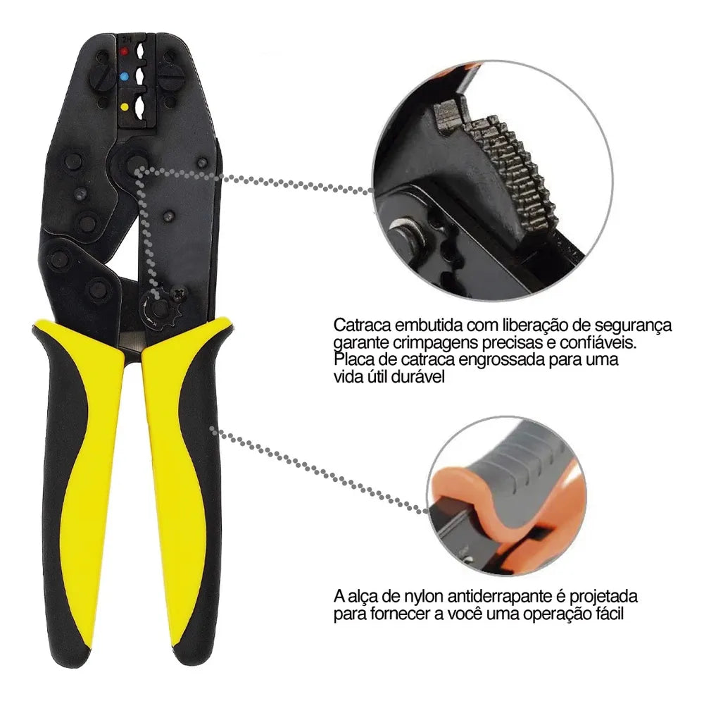 Com o alicate multifuncional, você poderá cortar, descascar, prensar e crimpar terminais elétricos de forma rápida e eficiente. Sua construção robusta e durável garante que ele seja uma ferramenta confiável para uso contínuo.
