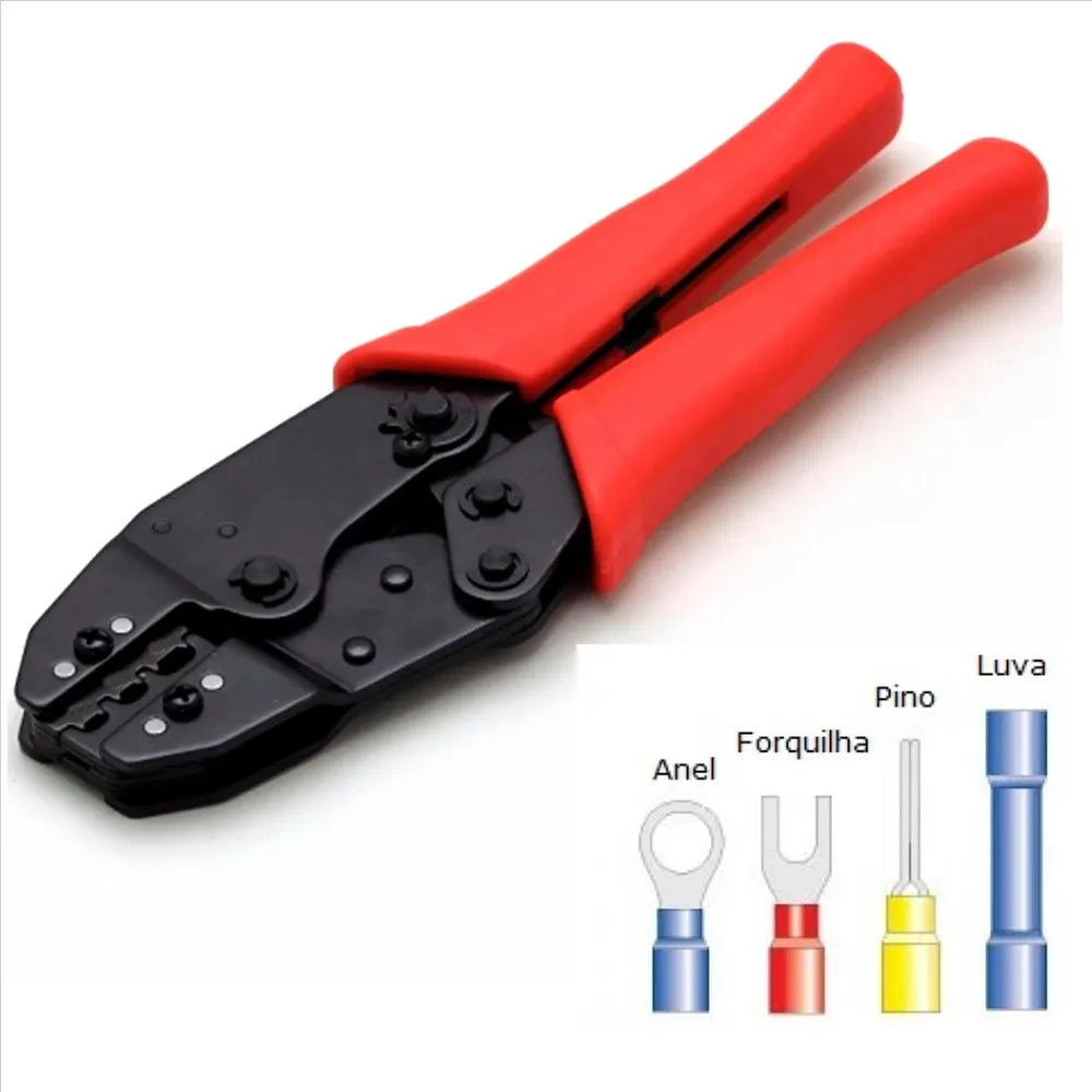Alicate de Prensar (Crimpar) terminais elétricos pré isolados. (Amarelo, Azul e Vermelho)