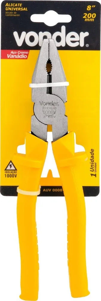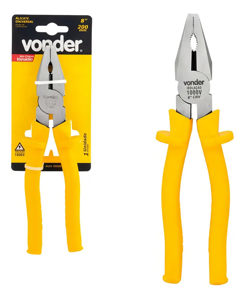 O Alicate Universal 8'' Vonder Isolado 1000 Volts é a ferramenta perfeita para profissionais que buscam qualidade e segurança em seu trabalho. Com sua marca Vonder renomada, você pode confiar na durabilidade e eficiência deste alicate. Feito de aço cromo vanádio, ele oferece resistência e precisão em cada uso. Sua voltagem máxima suportada de 1000V garante proteção extra ao lidar com eletricidade. O modelo profissional da Vonder garante um desempenho superior em todas as suas tarefas.