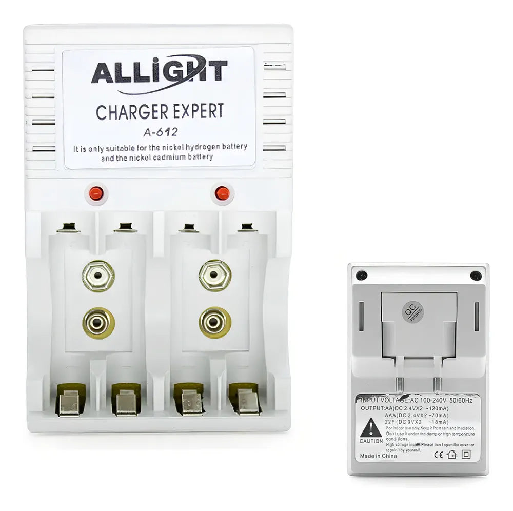 Com o carregador de pilhas A-612/LEY-261 você pode recarregar até 4 pilhas nos formatos AA, AAA e bateria de 9V ao mesmo tempo! Ideal para viagens e eventos onde você não precisa se preocupar em gastar pilhas. O produto é bivolt, compatível com voltagens de 110-220V. Com carregamento rápido e eficiente, ele apresenta segurança e a comodidade que você precisa para ter pilhas e baterias sempre recarregadas e prontas para uso. Ao comprar neste anúncio você estará adquirindo 1 CARREGADOR DE PILHAS + 8 PILHAS RECARREGÁVEIS AA.