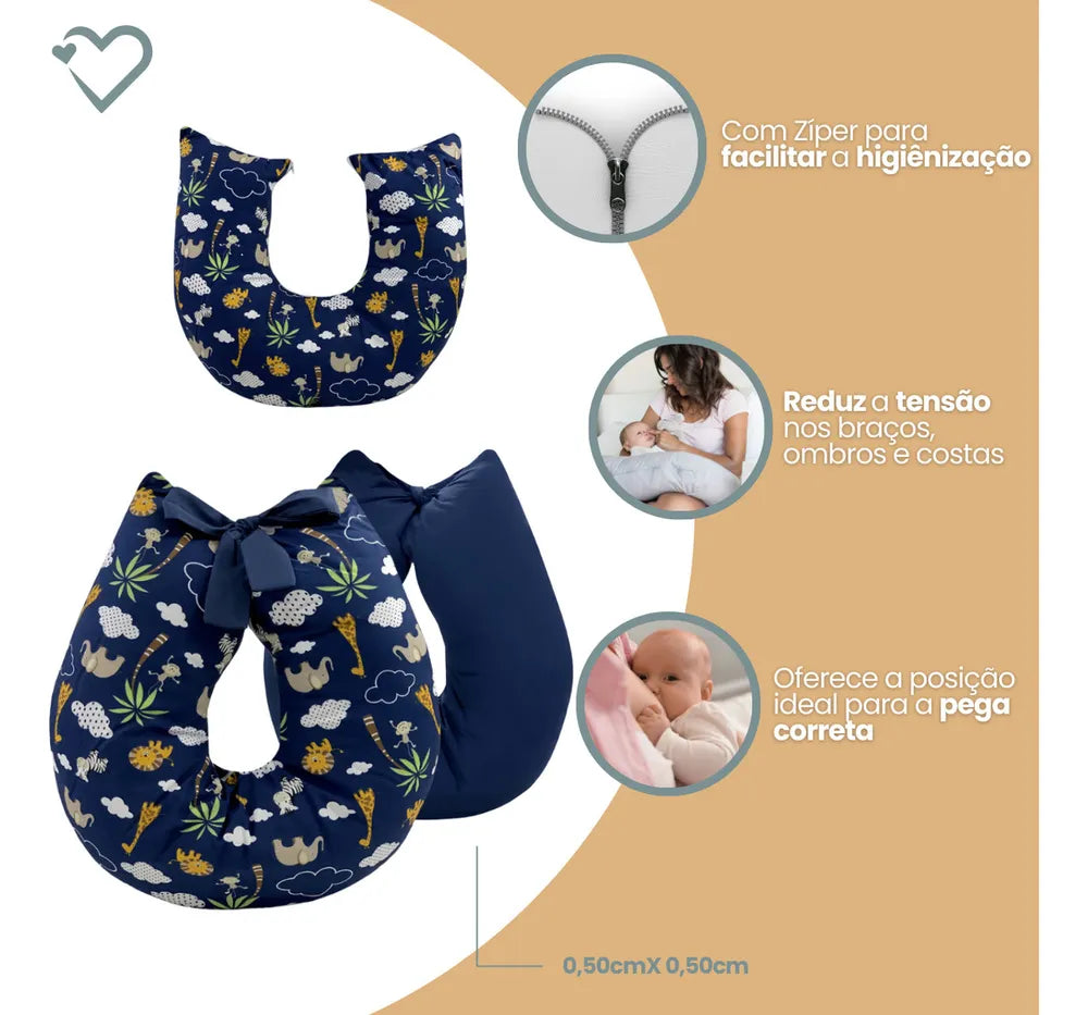 Transforme a hora da amamentação em um momento de conforto e tranquilidade com a Almofada de Amamentação Safari Azul Marinho. A escolha certa para mães que buscam qualidade e praticidade em um único produto.