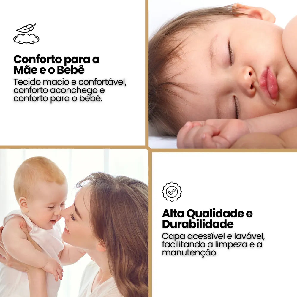 Feita com algodão de alta qualidade, a capa é suave ao toque e respirável, garantindo uma experiência agradável para o seu pequeno. O enchimento em fibra virgem siliconizada proporciona um suporte firme, mas acolhedor, ideal para os primeiros meses de vida do bebê, recomendada para a faixa etária de 0 a 6 meses.