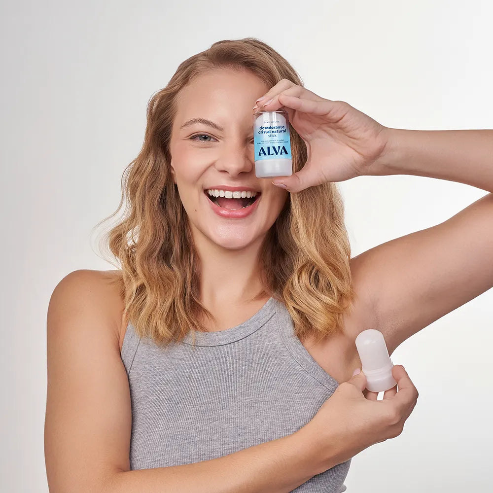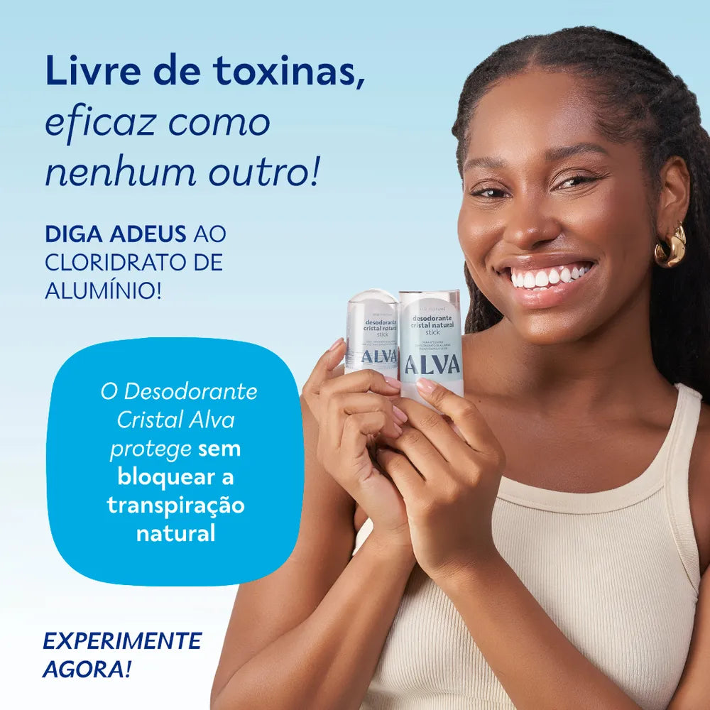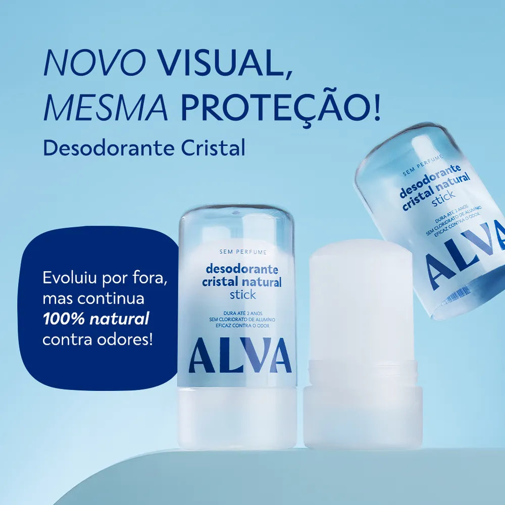 Modo de Uso: Umedeça o Desodorante Cristal Stick Vegano Alva em água corrente, e aplique nas axilas limpas. OU aplicar com a axila molhada após o banho. Se você quer mais durabilidade no controle do suor passe em uma região bem abrangente e aplique uma vez, espere secar e aplique novamente.