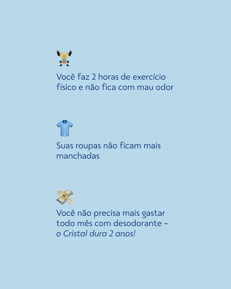 100% natural, não escurece as axilas, não mancha a roupa, ele tira as bactérias que causam o odor e te dá liberdade e proteção de até 12 horas de forma natural e saudável.
