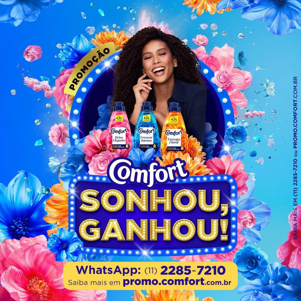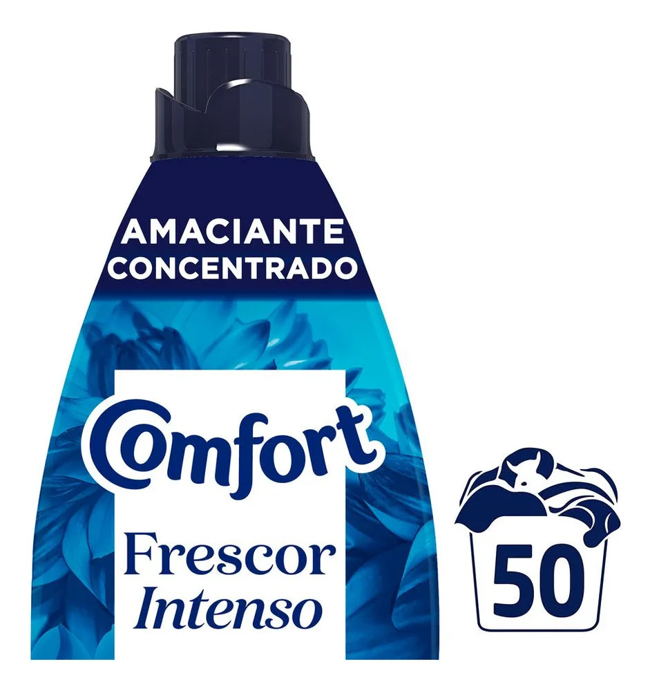 O Amaciante Concentrado Comfort Frescor Intenso tem 10x mais perfume** de longa duração, por isso deixa suas roupas perfumadas por muito mais tempo. Sua formulação incrível possui cápsulas de perfume que são liberadas durante a lavagem para deixar uma fragrância duradoura nas suas roupas e blindar o tecido contra o mau odor****. Comfort concentrado possui perfume encapsulado que penetra no tecido durante o processo de lavagem, deixando sua roupa muito mais cheirosa até mesmo depois de seca! O motivo? Quando você se movimenta, essas cápsulas de perfume para roupas se rompem e liberam essa fragrância incrível, fazendo com que aquele cheirinho de roupa lavada dure muito mais! Além disso, sua fórmula contém óleo de argan*****, um óleo natural com alto potencial nutritivo, que perfuma e trata suas roupas, prevenindo os danos da lavagem, mantendo as cores*** do tecido vibrantes por mais tempo, evitando a formação de bolinhas*** e esgarçamento***. Comfort te oferece tudo isso com um ótimo rendimento, por ser concentrado, menos de meia tampinha basta* , rende muito! Além de cuidar e perfumar suas roupas, o amaciante concentrado Comfort cuida do meio ambiente, sua garrafa e tampa são feitas com plástico 100% reciclado e reciclável. O Amaciante Concentrado Frescor Intenso cuida das suas roupas, pois possui ingredientes capazes de alinhar e proteger o tecido, reduzindo o atrito entre as fibras durante o processo de lavagem, evitando futuros danos nas peças. *Considerando recomendação de dosagem para máquinas até 8 kg (20 ml). **Teste analítico com 22,5 ml de produto comparado com marca diluída, sem perfume encapsulado do mesmo fabricante. ***Benefícios de tratamento do amaciante obtidos versus roupas lavadas sem amaciante. ****Baseado em testes realizados com odores representativos. *****Com óleo de argan na composição da fragrância.