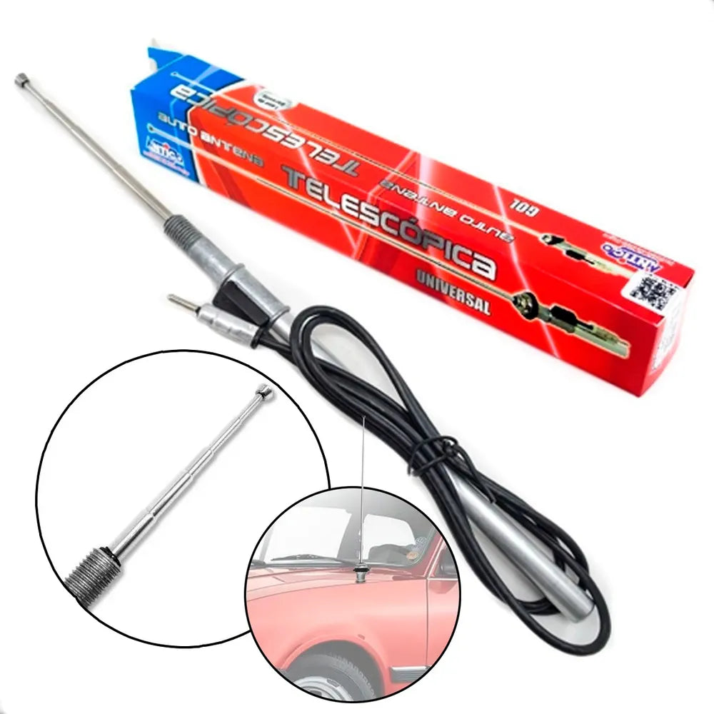 Desenvolvido pela Antico, a Antena De Paralama Receptiva Telescópica, tem sua haste na forma Telescópica, são funcionais , acompanha Cabo de 1,20m Plug DIN para rádio convencional, não possuem componentes eletrônicos para amplificar o sinal do rádio.