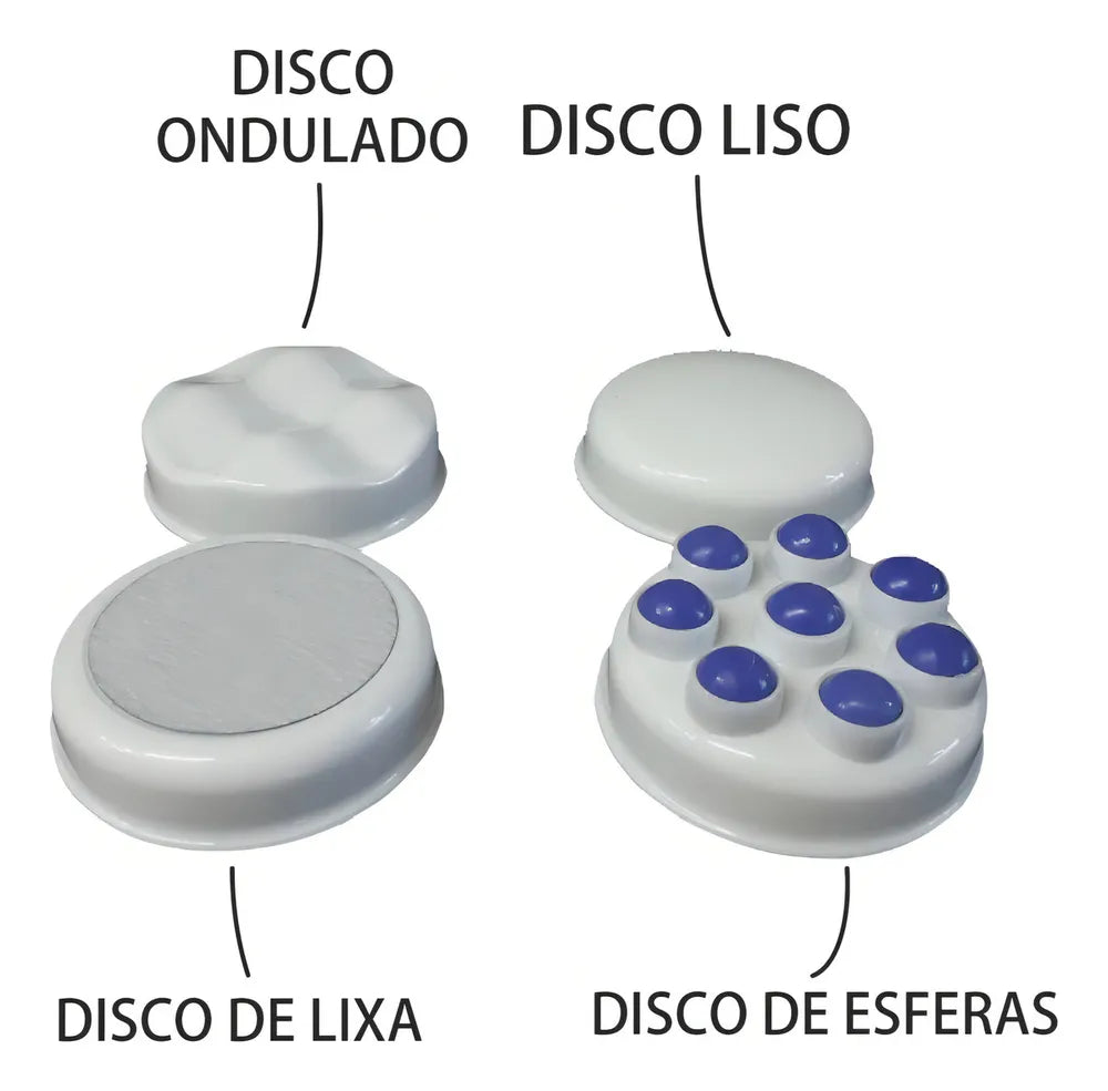 Portátil e prático, ajuda a eliminar gorduras e esculpir o corpo, através de seu movimento orbital e poderosa vibração.