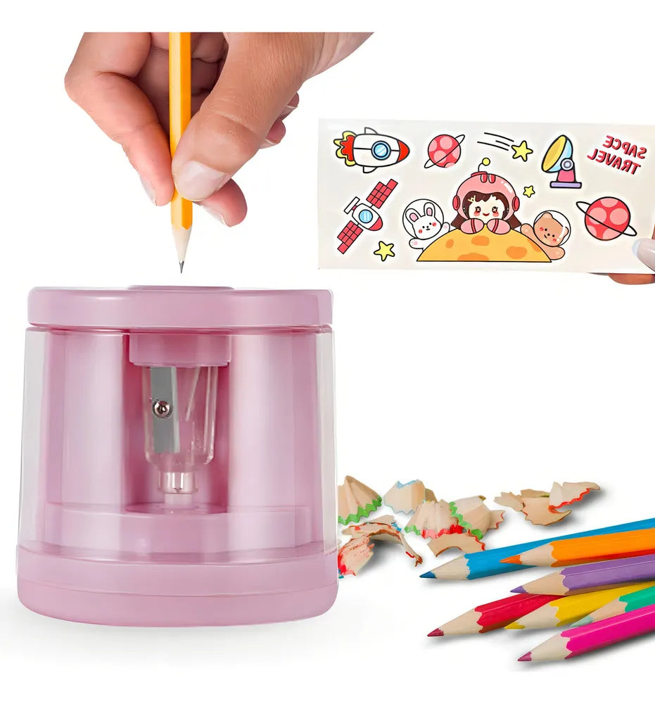 1x Apontador Elétrico [Rosa]: Um apontador compacto e elegante na cor rosa, que combina estilo com funcionalidade.